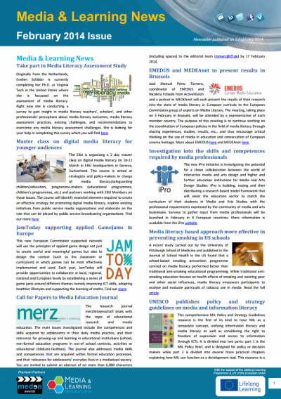 Highlights include the dates of the Media and Learning Conference 2014, news about the MEDEAnet spring webinar series programme, an article about a study into the Media Environment of Japanese Schools by Sachiko Imaizumi Kodaira, an article by Carol Summerside on Scaling-up lecture capture – a perspective from Newcastle University, an article about Supporting primary school students with their writing in the ‘City of Film by Franziska Florack and plenty of other news, notifications and announcements related to the use of media in education and training.