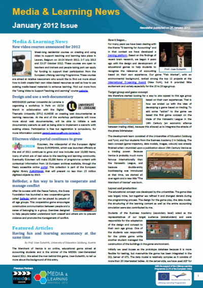 The first 2012 issue of Media & Learning News has just been published and in it you can read articles such as 'Media Literacy – a View from the US', 'Belfedar, a fun way to learn to cooperate and manage conflict', and a feature article about the Merchant of Venice, one of the MEDEA Awards 2011 winners, on which you can read more in 'Having fun and learning accountancy at the same time'.