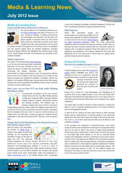 This month's issue includes feature articles by guest authors about the MILID Week In Barcelona highlights the importance of Media Literacy, How do you imagine Europe in 2111 and the Google Art Project.