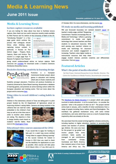 Media & Learning News readers will be pleased to know that the June issue of the monthly newsletter is out now. In it you will read about how interest in media and digital resources is growing as a US Study on media and learning has been published and questions are raised in our featured article on What's the point of media education? The MEDEA2020 partnership also reports on the First MEDEA workshop on animation and an introduction to the Italian National Film School - Animation Department is also included in this issue, along with tips on interesting sites, tutorials, guides and much more in the new section Top resources which promotes some of the latest resources in the Media & Learning Community Resources Database, and plenty of other news items, notifications and announcements related to the use of media in education and training. You can download this month's issue here and next month's publications will again be available in English, French, German, Italian, Polish and Spanish.