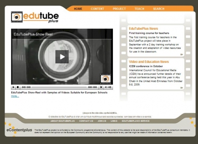The new EduTubePlus web site is now online and provides the latest news about progress in the development of the EduTubePlus multi-lingual curriculum-related video-based e-service for European schools which will be launched in 2010. This content-driven site also provides information about the use of video in education generally and visitors are welcome to submit news about developments, initiatives and events related to the use of video in schools.