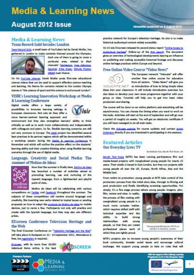 You can also read more about how a university is using web lectures in the first year of Health Studies (PACES) in France, find out about a competition for apps and mobile games, the EUscreen Conference Television Heritage and the Web, and how Team Record Gold invades London. Plenty of other news, notifications and announcements related to the use of media in education and training can be found in the August issue.