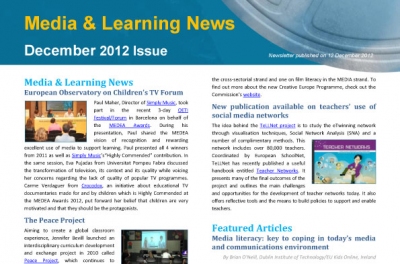 Today ATiT published the last issue of this year of the monthly publication Media & Learning News. Highlights in this month's issue include a new publication on teachers’ use of social media networks, news that MEDEA Awards winners were announced in Brussels, and Media & Learning 2013 confirms its 2012 conference dates: 12-13 December!