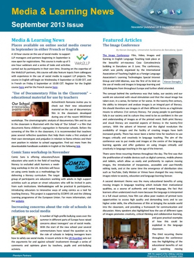 The newsletter also provides information about useful resource materials for teachers and trainers, the latest news from the Media & Learning network and a wealth of other items including news about events and tools related to the use of media in teaching and learning. Read the full newsletter here.