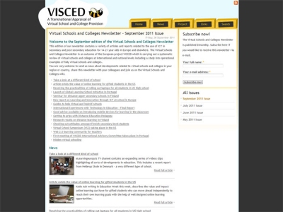 On 30 September 2011, the September issue of the Virtual Schools and Colleges Newsletter has been published last Friday, a newsletter published by the VISCED project. Containing a variety of articles and reports related to the use of ICT in secondary and post-secondary education for 14-21 year olds in Europe and elsewhere, this issue includes an article extolling the value of online learning for gifted students in the US, a new report on Learning and Innovation through ICT at school in Europe and a Virtual School Symposium (VSS) taking place in the US. Among other interesting articles, you can also read the latest blog post by Paul Bacsich, VISCED's project coordinator, entitled "Hidden virtual schooling" as well as an article about the first meeting of VISCED International Advisory Committee that took in Portugal. You can read the issue at the VISCED project website.