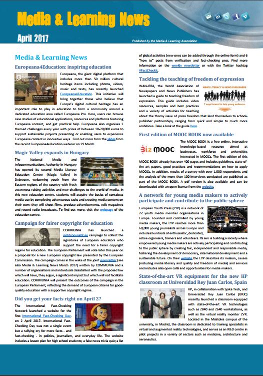 The April issue of the Media & Learning Newsletter is out!